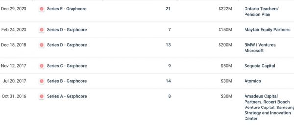于是,在2017年获得了超过8000万美元投资后的Graphcore,又接连在2018年与2020年分别获得2亿与1.5亿美元风险投资。