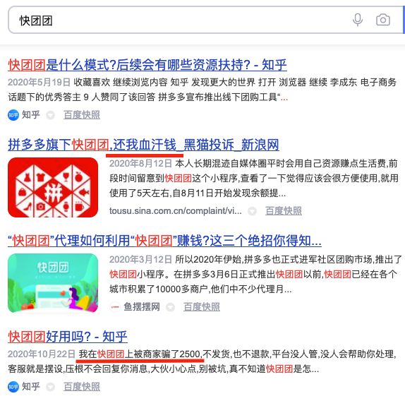 但其热度并未持续太久,几个月后,快团团在社区团购的厮杀中销声匿迹,只留下了很多负面消息。