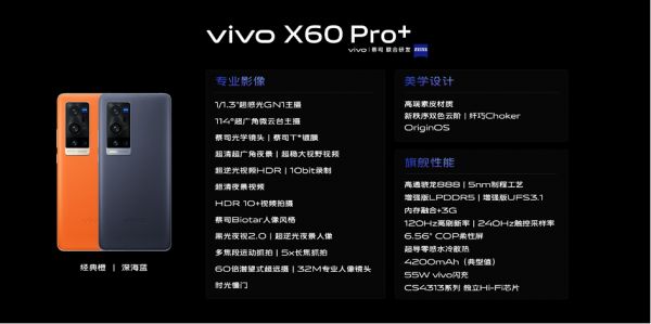 最前线 | vivo发布专业影像旗舰X60 Pro+:蔡司镜头+骁龙888,售价4998元起