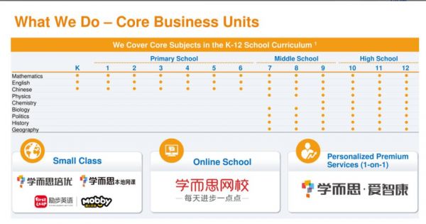 好未来的业务主要划分为三部分,一是线下小班课,这是好未来发家致富的大本营,二是学而思网校,即K12在线双师直播大班课,这是近几年来好未来排兵布阵的主要火力点,另外还有智康1对1业务。