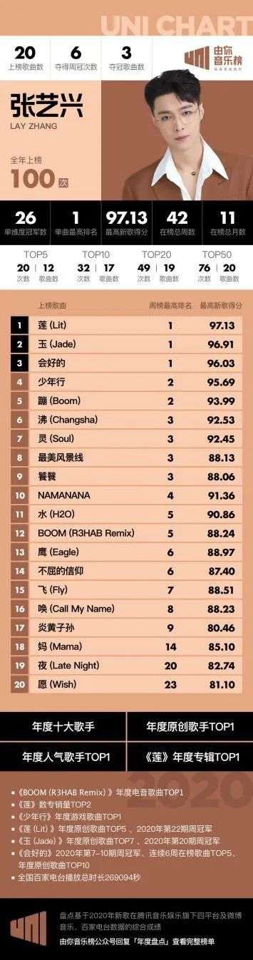 背靠腾讯音乐娱乐集团(TME)前沿的音乐理念和优势数据资源的由你音乐榜(UNI-CHART)经过两年多的沉淀,从音乐榜单到音乐大数据,正在逐步具有行业内参属性,并承担起为音乐人们提供直抵听者内心的“通关秘籍”的重任。