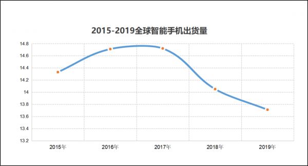 IDC数据显示,近五年来,全球智能手机市场增速不断下滑,2017-2019年,全球智能手机出货量经历三连降,这意味着全球智能手机市场陷入了存量竞争。
