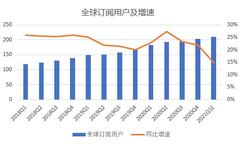 截止第四季度末,2020全年订阅用户净增长3700万,较之于2019年的2800万,同比增长了31%,Netflix全球付费用户总数突破了2亿大关,达到了2.0366亿人,超出市场预期。