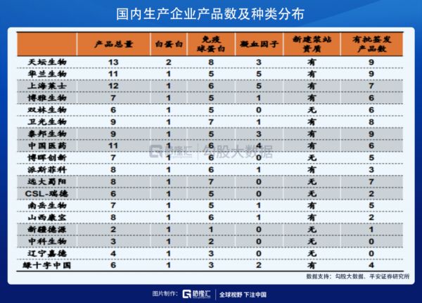 同时 2008 年卫生部颁布的《单采血浆站管理办法》第十一条规定,血液制品生产单位注册的血液制品少于 6 个品种的,承担国家计划免疫任务的血液制品生产单位少于 5 个品种的,不予批准新设浆,2012 年《单采血浆站管理办法》(修订版)进一步收紧审批,在前述满足品种数量的基础上,要求同时包含人血白蛋白、人免疫球蛋白和人凝血因子类制品三大类。
