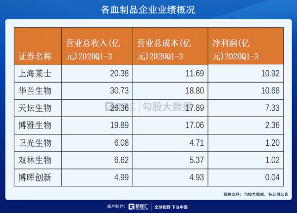 博晖创新是一家集研发、生产、销售及售后服务为一体,致力于技术创新的生物高新技术企业。公司业务涉及检验检测及血液制品两个细分领域。2020年上半年营收2.7亿元,净利润-1595万元,前三季度净利润569万元;其中血制品部分营收1.43亿元。公司目前总市值85亿元,动态PE 1121倍。