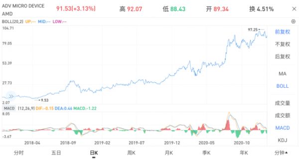 而“老冤家”AMD则在华裔女CEO苏姿丰(Lisa Su)的带领下,用六年时间强势翻盘,不仅成功将AMD从绝境中扳回局面,更是实现了市值与股价的疯狂逆袭,从六年前最低不到2美元的股价,一路飙升到如今超过90美元,市值破千亿。