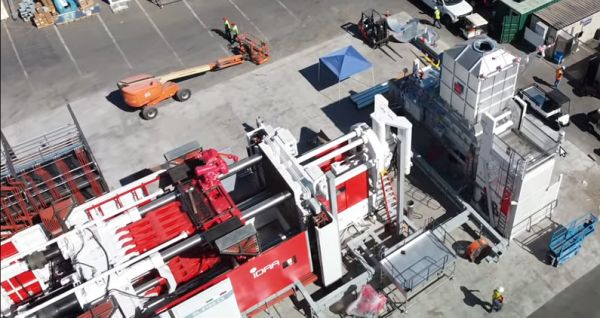 比如在去年12月,一家外媒就通过航拍捕捉到了临港工厂里一台长19.5米、高5.3米、篮球场大的巨型机器。这是特斯拉与意大利工业机械巨头意德拉(IDRA)联合研发的铝铸工艺压铸机。这台压铸机几个月前才刚刚抵达上海,在调试完成后已经迫不及待地开始运行[1]。