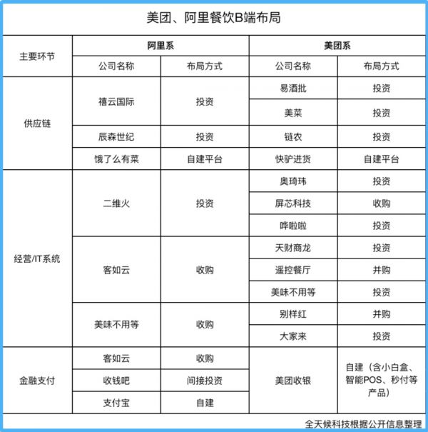在巨头的资本动作下,餐饮to B的企业正陆续被拉入阿里、美团的阵营,竞争意味越来越浓。