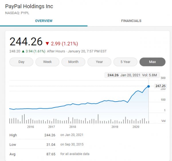 而线上交易量的激增也使各大移动支付公司的股价顺势“起飞”。其中,PayPal的表现尤为出色,从年初的约100美元,飙升至年末的约240美元,上涨了一倍以上,被认为是2020年的首先股票。