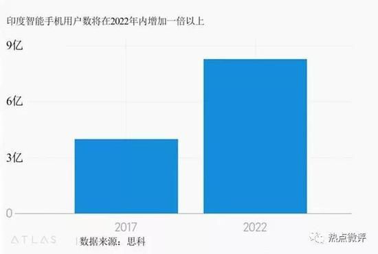 印度是一个又穷又大的国家,智能手机用户快速增长,电商生态尚处于发展阶段,而且巨头缺乏,市场人口红利大,印度的3G/4G用户量正处于爆发期,根据思科第13期视觉化网络指数(VNI)报告指出,到2022年,印度智能手机用户将达到8.29亿,占其国内总人口的60%。