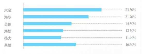品牌格局的初步确立见证了这个竞争趋势的形成与发展。据报告显示,2020年上半年物联网多联机市场逐渐形成了以大金、海尔、美的、海信和格力为主的五强格局,其中海尔以21.7%的市场占有率位居第二,美的以14.5%位居第三,海信以12.3%位居第四,格力以11.4%位居第五。