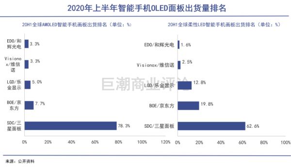 2020年上半年智能手机OLED面板出货量排名
