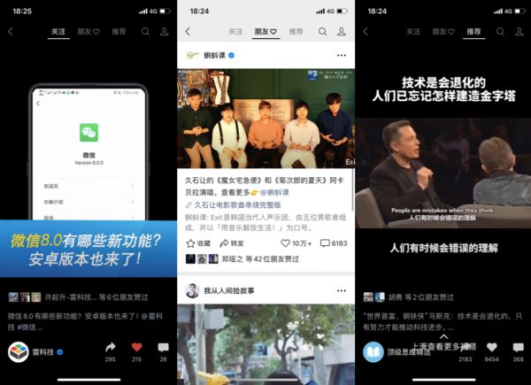 在微信前,短视频平台都是机器推荐为主的,机器推荐解决的是内容供给过剩下用户选择成本高的问题,但信息茧房、阅读视野狭窄与强者恒强限制流动性等问题一直都存在。