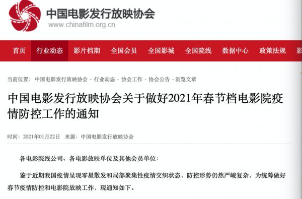元旦档开门红的喜悦没持续几天,河北、吉林、黑龙江、北京相继多点爆发聚集性病例,再次拉响疫情的警报。国家政策从提倡原地过年,到限制返乡过年。突如其来的乌云笼罩刚复苏的电影行业,爆发疫情的中高风险地区相继关停影院,北京市大兴区上座率下调至50%。