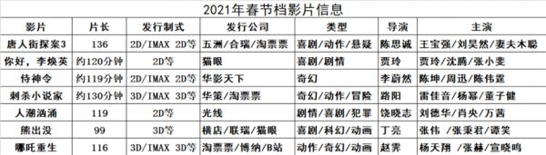 而一旦有了2个小时的限制,必定会影响春节档的排片策略。到目前为止,《你好,李焕英》《侍神令》《刺杀小说家》三部片的片长还没确定,冠军头号种子《唐人街探案3》片长136分钟,显然比较棘手。影院排一场《唐人街探案3》加上中场休息,赚的钱可能不如排两部90分钟的片子。