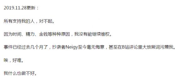经历一次次的抗争后,文不叮对这些好意告知她的粉丝朋友表示感谢,但抄袭太多、维权太难,最终无奈以“算了”收场。