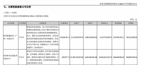 根据其2020半年报,欧菲影像(即得尔塔)录得营收21.2亿元,占当期营收总额约10%;净利润1.8亿元,占当期总净利约36%。可以看出,该子公司属于欧菲光的核心资产。