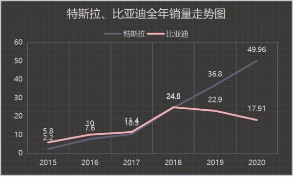 过去10多年,特斯拉与比亚迪一直隔空较量,互相追赶和超越。原本两家在新能源汽车赛道上是你追我赶,差距很小,但是从刚刚过去的2020年来看,比亚迪可能会印证那句老话——这是过去十年最差的一年,也是未来十年最好的一年。