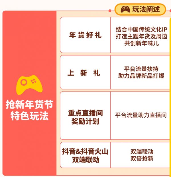 从抖音公布的年货节活动的玩法来看,抖音年货节,无疑就是来抢辛巴流量的,这一目的在公开之日起就跃然纸上: