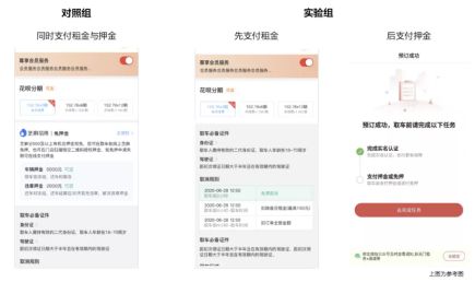• 对照组:现行支付流程,用户在下单页面需要同时支付租金与押金;