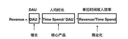 在国外,类似Facebook、Google、亚马逊等互联网公司中,增长早就是核心部门。其中,Facebook总分为三块:增长,核心产品和商业化。业务部门的目标和公司整体的目标用一个数学公式可简化表达为: