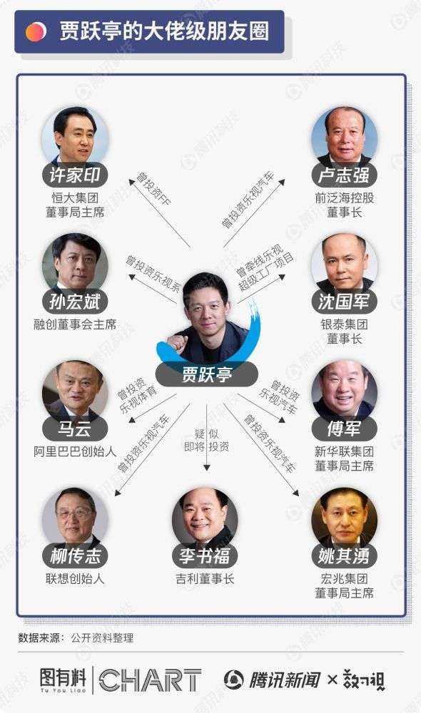 贾跃亭的企业家朋友圈,含金量十足,其中不乏柳传志、马云、许家印、孙宏斌这样的大佬。