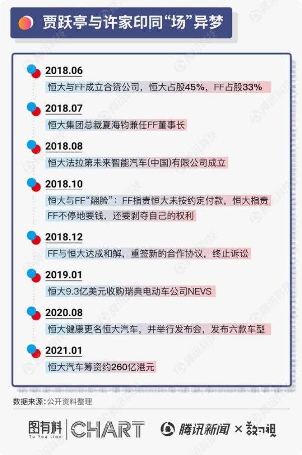 当贾跃亭退出乐视系、全身心经营FF的时候,再一次遇到了财务危机,这一轮伸出援手的是许家印。