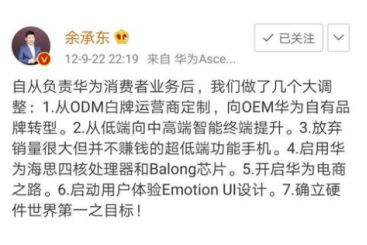 再看国内的华为,在从2012年转型做自主品牌手机之时,接管华为消费者业务的余承东,就确定了7大战略,包括从低线向中高端智能终端提升,放弃销量很大但并不赚钱的超低端功能手机,启用华为海思四核处理器和Balong芯片等。