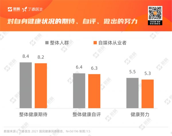 但对于自媒体从业者而言,他们健康期待、自评、努力评分却低于整体人群的平均值。