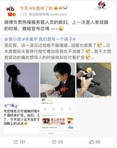 除了新媒体人的生活被工作捆绑,其他行业的打工人同样有共鸣。比如负责微博热搜的某位程序员,从结婚到度假再到妻子怀孕,屡次人生大事都撞上明星官宣大料。