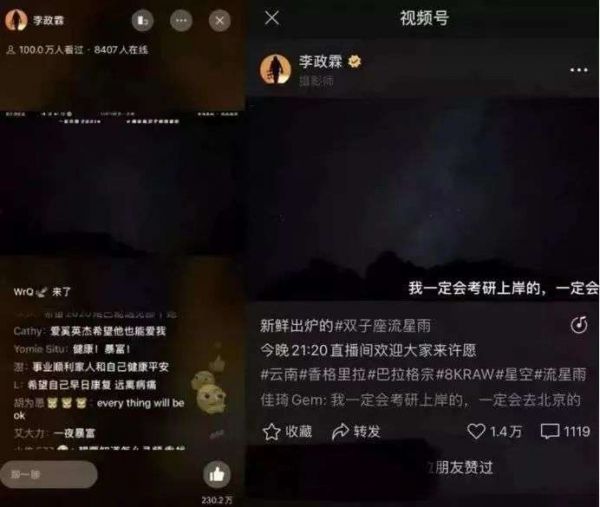 视频号上的流星雨直播