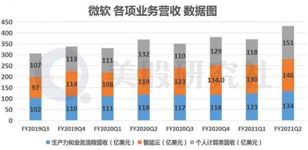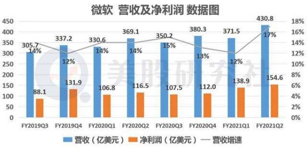 2021财年Q2财报显示,微软的营收为430.8亿美元,同比增长17%,首次突破四百亿大关。该数值也远超出了去年10月公布的指导区间,即395亿美元至404亿美元。