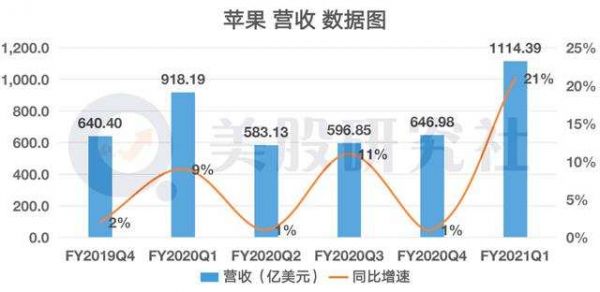和微软相似,苹果最新季度的营收也实现了整数关口的突破。财报显示,公司营收高达1114.39亿美元,同比增长21%。环比增长21%。