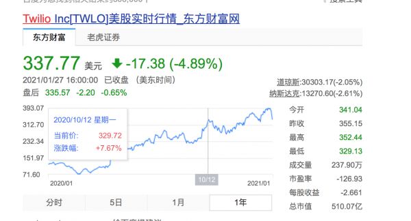 Twilio股价一年走势