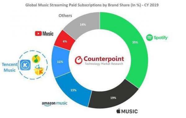 根据 Counterpoint Research 的最新调查结果显示,2019 财年全球在线音乐流媒体订阅量同比增长 32%,达到 3.58 亿订阅量。2020 年底,在线音乐流媒体订阅将同比增长 25% 以上,超过 4.5 亿订阅。