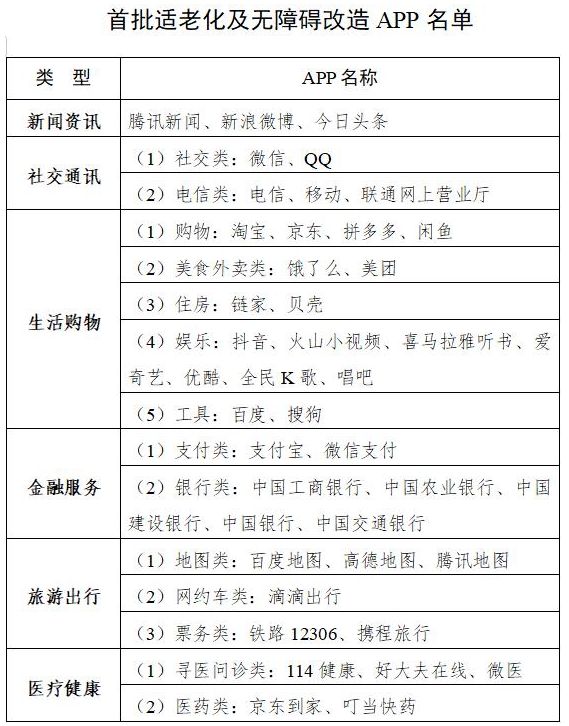 据了解,参与适老改造的首批115个公共服务类网站和43个手机App,其中手机端涵盖新闻资讯、社交通讯、生活购物、金融服务、旅游出行以及医疗健康等领域,所涉及的App也都是市面上的主流应用。