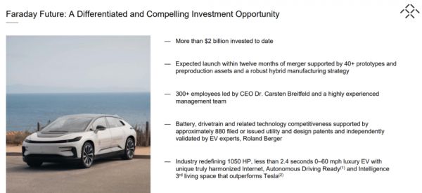 投资方开始浮出水面。FF公告显示,普通股PIPE包括来自美国、欧洲和中国的超过 30 家长期机构股东。而PIPE 基石投资人包括中国排名前三的民营汽车主机厂和长期机构投资股东。本次合并交易大约为 FF提供约10亿美元的资金。
