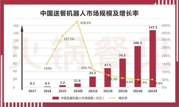 据NCBD餐宝典数据显示,2020年底,仅送餐机器人这一细分市场的规模就有11.6亿,预计2021年底将达到24.3亿,2025年,或将逼近150亿。