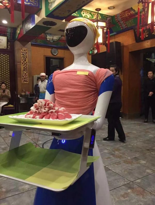 比如2016年吉林辽源一家名为“王宝长天津卫碳锅店”的火锅店曾引进人形的送餐机器人。