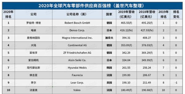 [14] 盖世汽车,2020年全球汽车零部件供应商百强榜:上榜中国企业有这些