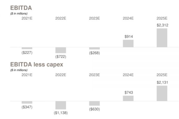 FF认为在市场前景乐观的背景下,自己的电动车产品将获得良好的销售业绩,下图可见,FF预计到2025年,旗下乘用电动车产品(包括FF91、FF81和FF71)销售总量将达到26.68万台。面向企业用户的“最后一英里”货运电动车到2025年销售将达到3.5万台。随着电动车销售的增长,到2025年,FF预计销售收入将达到200亿美元以上。