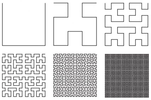 1891年,戴维·希尔伯特描述了一条令人注目的分形曲线,通过一组简单的指令,就能使一条可能无限长的线填充任何有限的空间