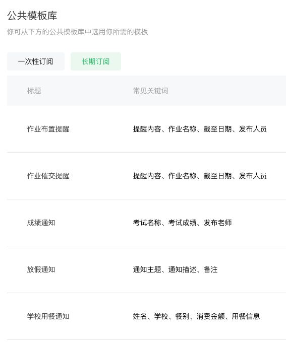↑教育信息服务类目下的长期订阅模板