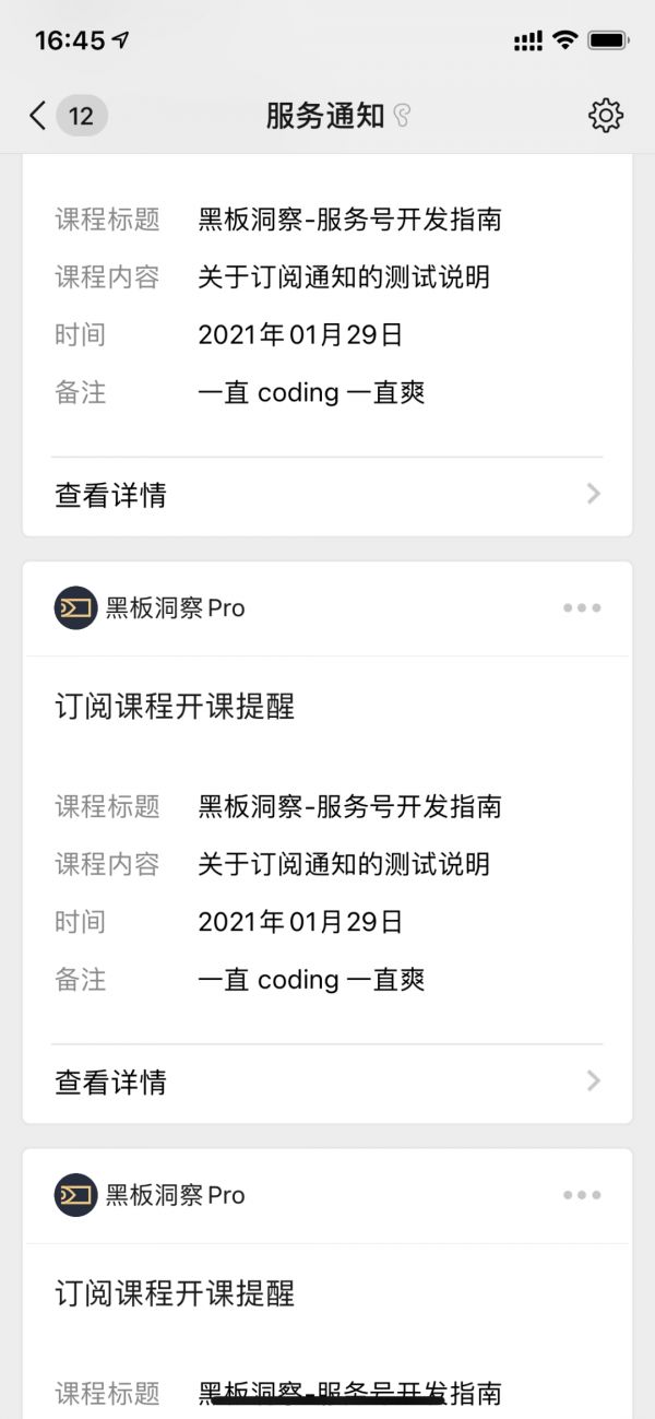 前面讨论的都是用户端的内容,对于企业或者商家自身的业务流程来说,受到的影响可能更大。比如,学员付费后,班主任会收到报名成功通知;教务排课后,老师收到排期提醒等等,这些接收方无法及时主动授权的场景,实现起来就变的非常艰难。目前可行的方案是,这部分通知迁移到企业微信的自建应用里,总感觉微信是故意的,为企业微信在下很大一盘棋(误)。