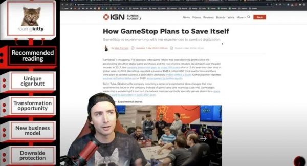 就是在这个频道里,吉尔袒露自己持有游戏驿站的仓位,并阐述持有的理由:“游戏驿站在未来几年仍将保持一定的市场份额,它不会破产。2030年也许会,但2020年它不会。我知道很多人在打线上游戏,但游戏驿站可以服务不同的人群,毕竟不是每个人都有亚马逊会员对吧?”