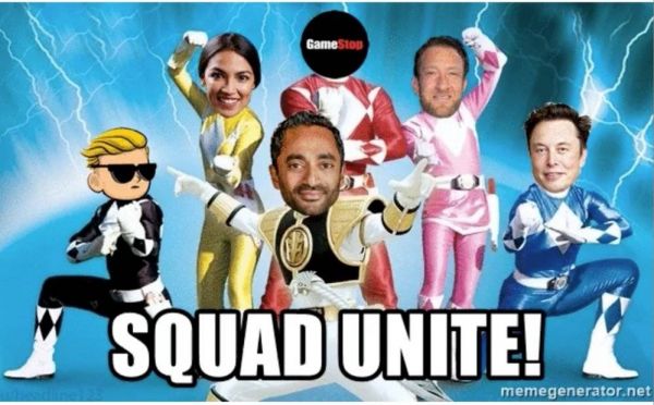 华尔街赌局里的漫画,将马斯克、投资人Chamath Palihapitiya等称为和游戏驿站并肩的斗士。