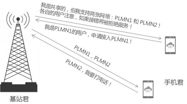 手机要识别哪家的网络,最关键的就是识别PLMN。因此要提供服务,每个小区都必须不断地广播PLMN号,让手机接入正确的无线网络,再连接到对应的核心网和提供服务。