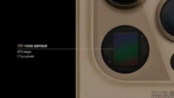 比如说论CMOS规格,苹果在iPhone 12 Pro Max上使用了一颗1/1.7英寸超大底的定制1200万像素传感器。这是什么概念呢?大家要知道,当前业界流行的6400万超高像素方案,传感器尺寸也是1/1.7英寸。但它的像素值比iPhone所用的高了五倍还多,换句话说,就是iPhone 12 Pro Max的主摄,单个像素的感光面积就是这类机型的5倍。