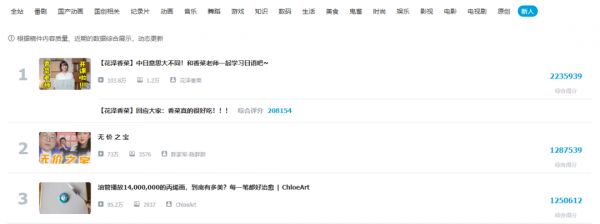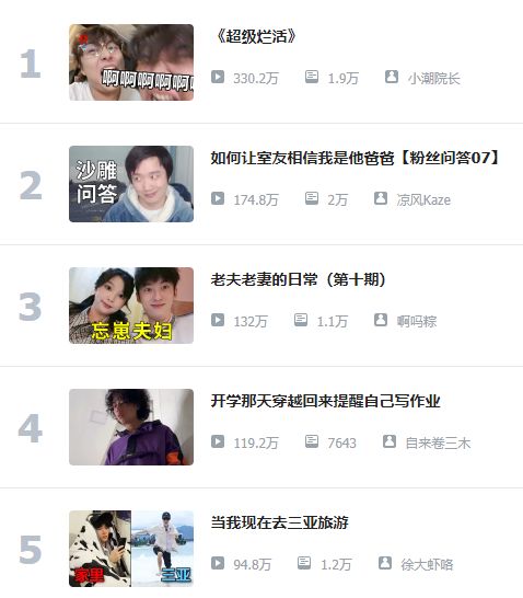 头部UP主占据排行榜定义热门