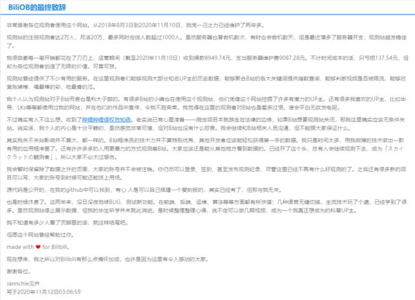 BiliOB的关站公告